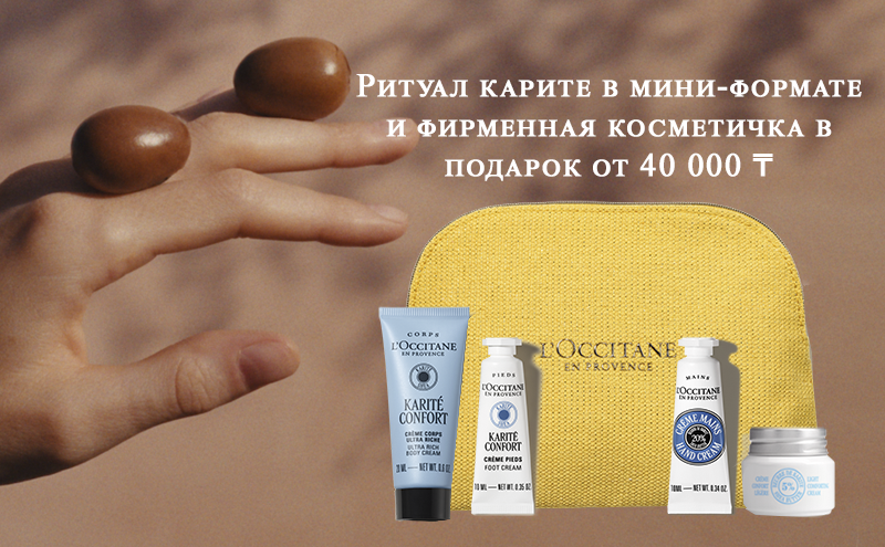 Совершите покупку от 40 000 тенге продукции без скидки и мы положим к вашему заказу ритуал Карите в фирменной косметичке!