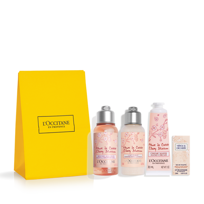 В набор входит: аромат 7,5 мл, крем для рук 30 мл, гель для душа 75 мл, молочко для тела 75 мл.