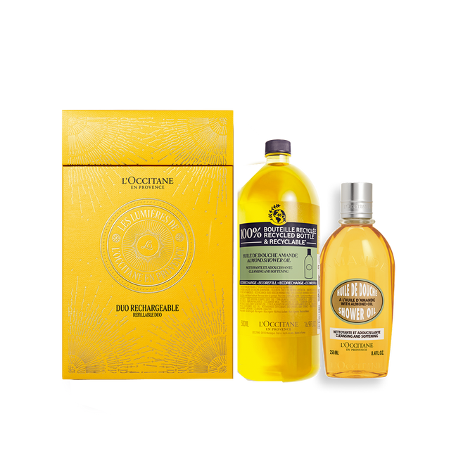 В состав подарка входит: Масло для душа 250 мл и эко-формат 500 мл.