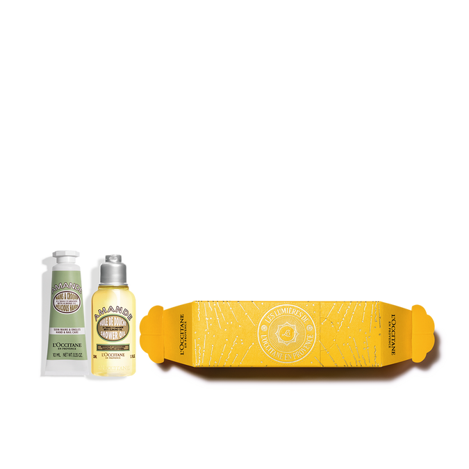 В состав подарка входит: масло для душа Миндаль 35 мл, крем для рук Миндаль 10 мл.