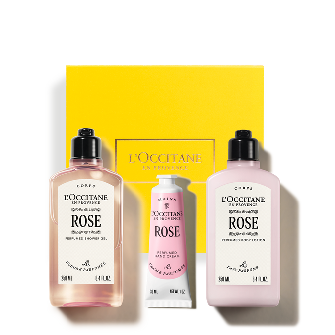 В состав подарка входит: гель для душа 250 мл, молочко для тела 250 мл, крем для рук 250 мл, фирменная коробка.