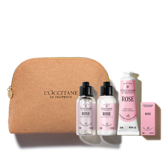 В набор входит:Крем для рук 30 мл, Гель для душа 75 мл, Туалетная вода 7,5 мл, Молочко для тела 75 мл, Фирменная косметичка и пакет.