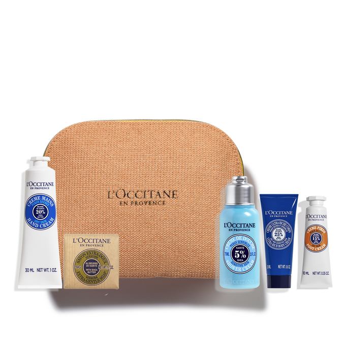 В набор входит: Крем для рук 30 мл, Крем для душа 75 мл, Мыло 50 гр, Молочко для тела 20 мл, Крем для ног 10 мл. Фирменная косметичка и пакет.