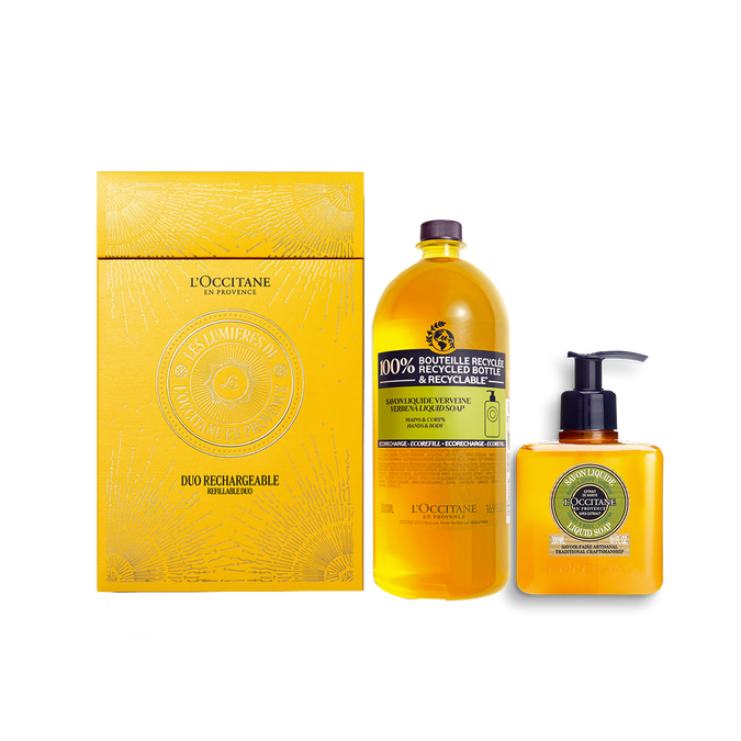 В состав подарка входит: жидкое мыло Карите и Вербена 500 мл, жидкое мыло Карите и Вербена, в экологичной упаковке 500 мл