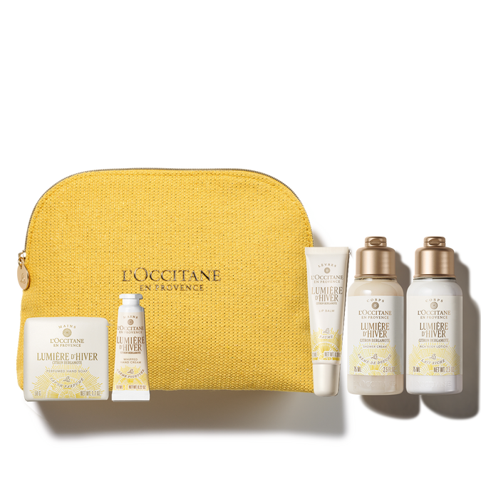 В набор входит: Крем для рук 10 мл, Гель для душа 75 мл, Бальзам для губ 12 мл, Молочко для тела 75 мл, Мыло для рук и тела 50 гр, Фирменная косметичка и пакет.