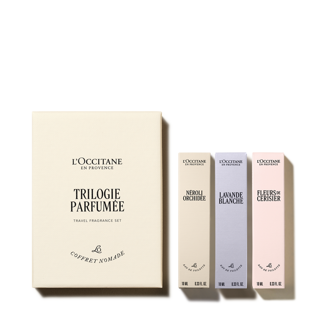 В набор входит: Туалетная вода Флер де серизие 10 мл, туалетная вода Лаванда Бланш 10 мл, туалетная вода Нероли Оркидэ 10 мл.